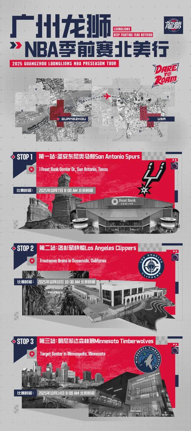 已经抵达美国的广州队正在严阵以待,首战马刺(10月7日),次战快船(10月10日),最后一战森林狼(10月14日),3个对手全部不是善茬含金量十足。