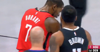 比赛时,KD直接指着布朗叫他滚回去坐下