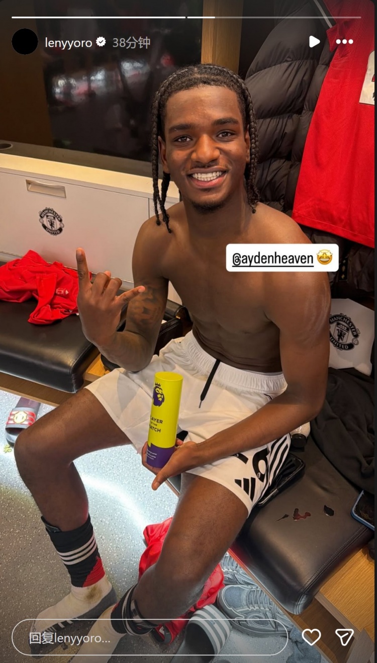 海文踢满全场帮助曼联取胜,并当选全场最佳球员,此役替补出场的约罗社媒晒出海文手拿最佳球员奖杯的照片,对他表示祝贺。